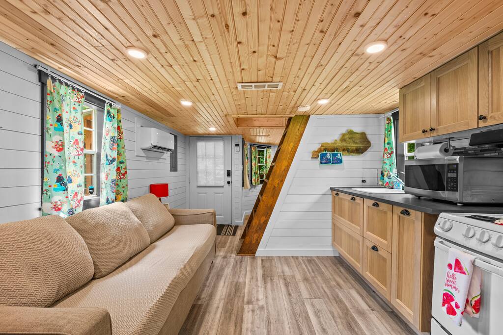 Escape to this peaceful and private tiny home just steps from the Kentucky River. Surrounded by nature, it’s perfect for outdoor lovers with nearby hiking, climbing, and boating. After a day of adventure, relax in the hot tub on the porch or gather around the fire pit. With retro vibes, fast WiFi, and AC, this cozy retreat offers the perfect blend of rustic charm and modern comfort. Recharge, unwind, and soak in the serene beauty of the Kentucky countryside.