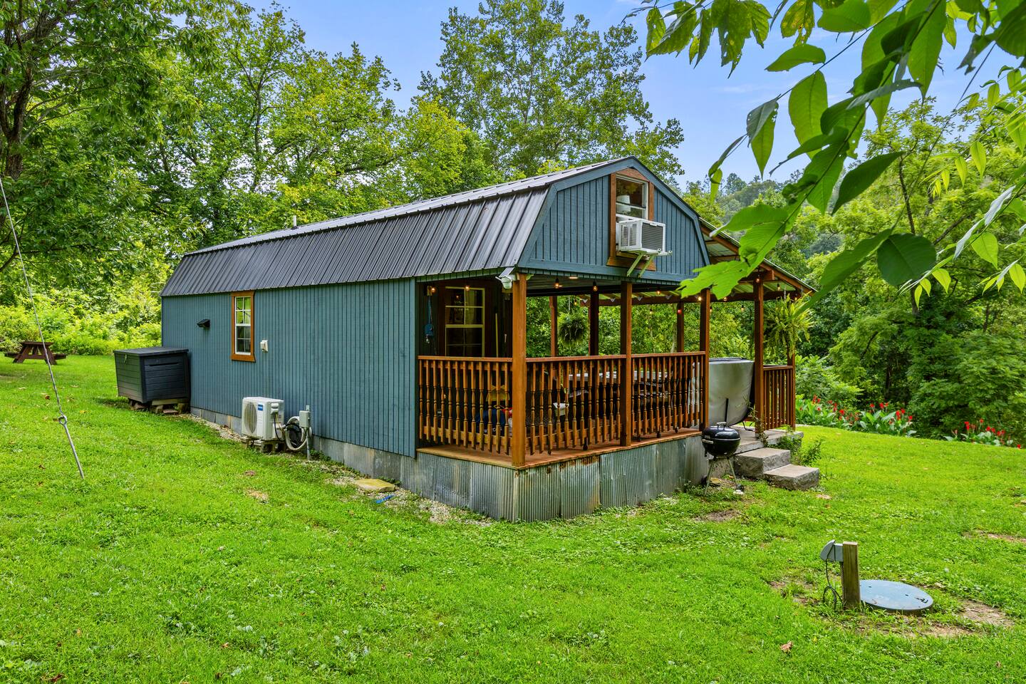 Escape to this peaceful and private tiny home just steps from the Kentucky River. Surrounded by nature, it’s perfect for outdoor lovers with nearby hiking, climbing, and boating. After a day of adventure, relax in the hot tub on the porch or gather around the fire pit. With retro vibes, fast WiFi, and AC, this cozy retreat offers the perfect blend of rustic charm and modern comfort. Recharge, unwind, and soak in the serene beauty of the Kentucky countryside.